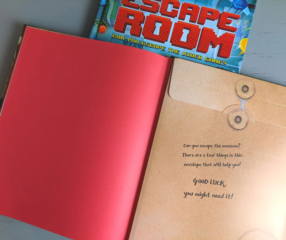 * Escape Room: Can You Escape the Video Game? (47 pages plus over 30 items to press out and make) – A strange game disc appears in your house. As the game starts up, you zoom through a vortex of glowing pixels, right into the screen! And BAM, you’re trapped inside the game.