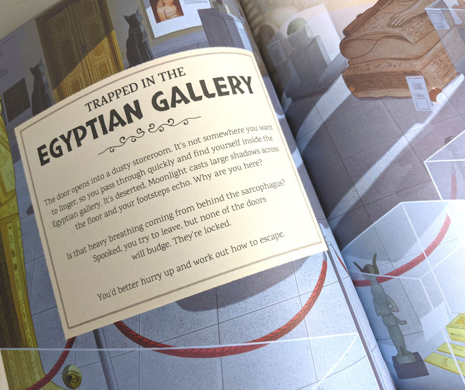 * Escape Room: Can You Escape the Museum? (47 pages plus over 30 items to press out and make) – Your footsteps echo inside the deserted Egyptian gallery, and a shiver goes down your spine. Something doesn’t feel right. You try to leave, but the doors won’t budge – they’re locked. You’d better hurry up and figure out how to escape!