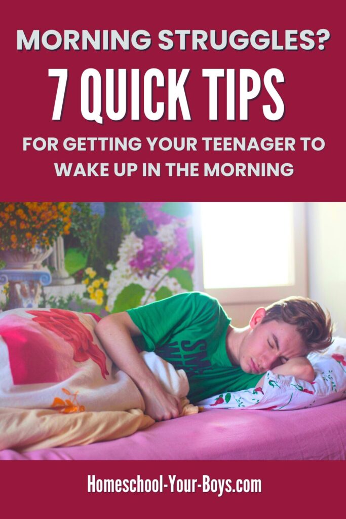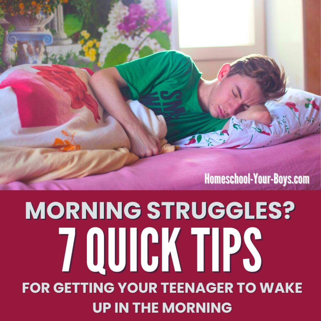 I hope these tips help! Honestly, the best motivation I’ve been able to find for my boys to get out of bed is the pain of having to continue doing schoolwork later in the day than they would like to. They don’t want to sleep their morning away if they know that they’ll be doing schoolwork all afternoon and evening.