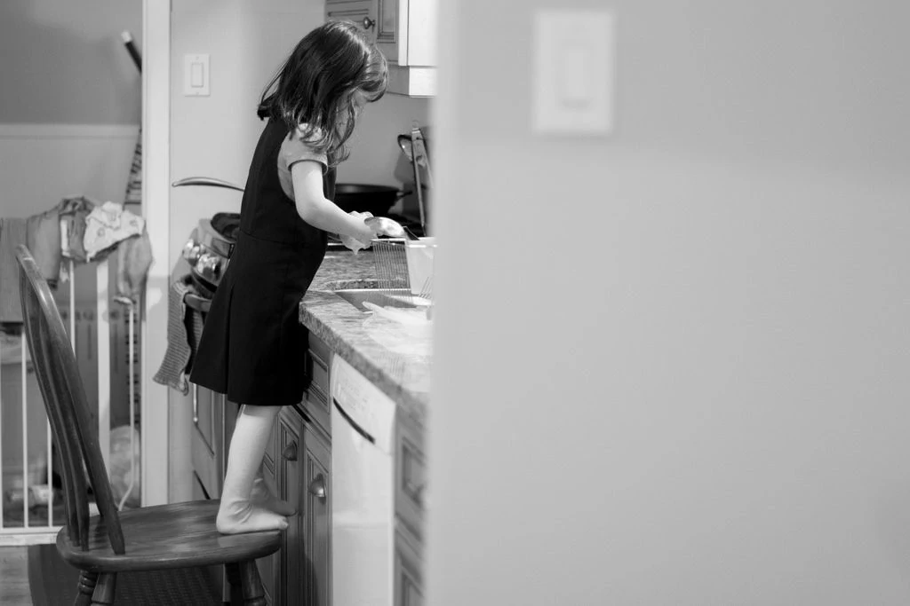 When they’re young, they want to be with us all the time. They are THRILLED to be able to help by folding socks and washcloths. They WANT to help with the cooking and with loading the dishwasher.