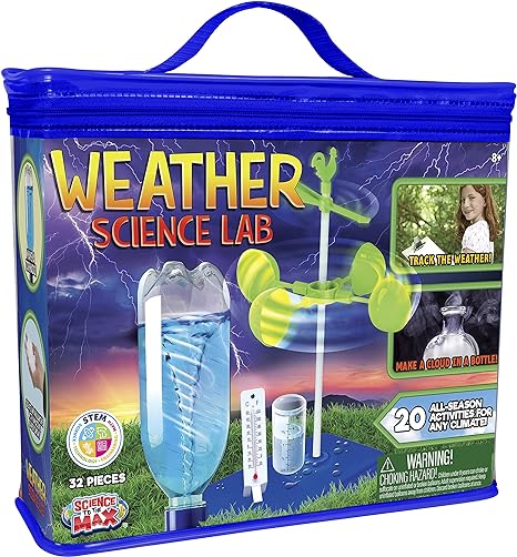 Weather Science Lab – Spark your child’s curiosity & imagination. This kit includes 20 all-season activities for all climates. It teaches kids meterology and covers a wide range of weather-related subjects, boosting their cognitive skills.